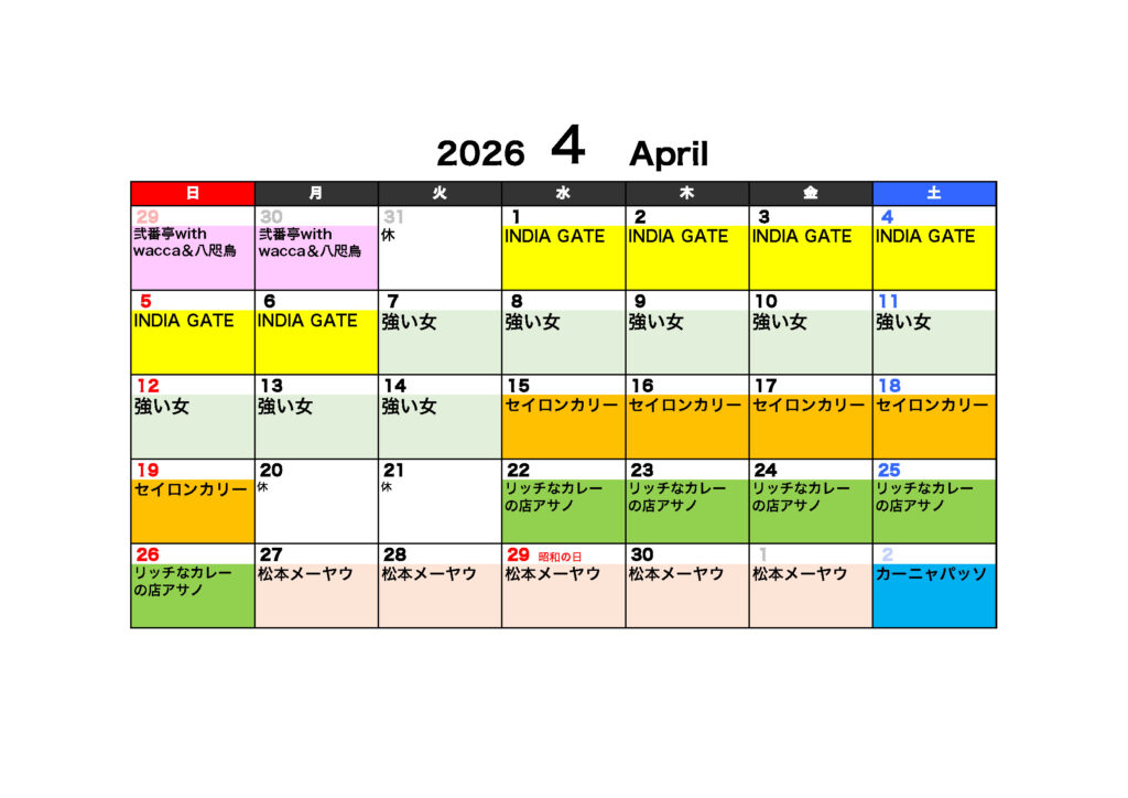 【4/15〜19】セイロンカリー(大阪)