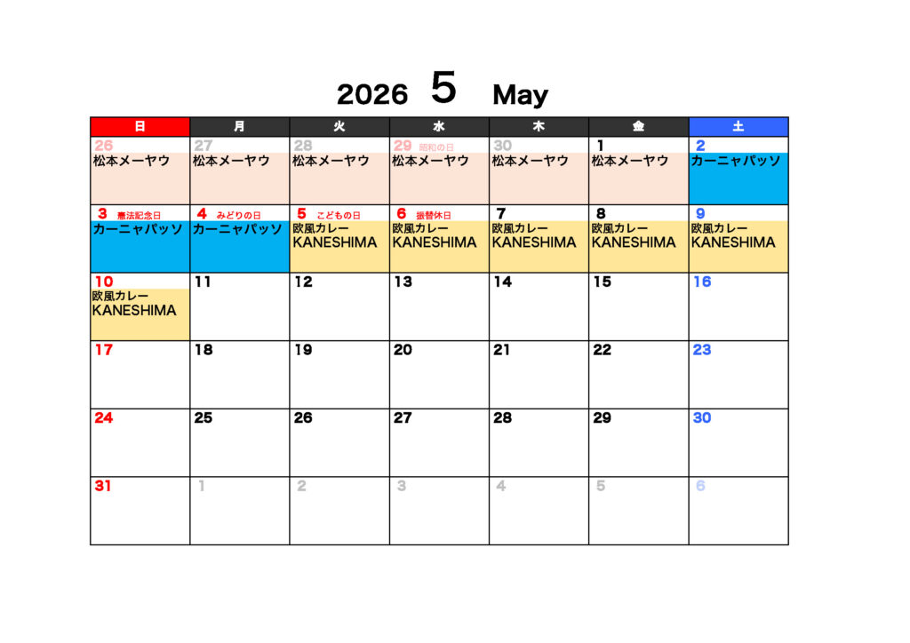【出店カレンダー】