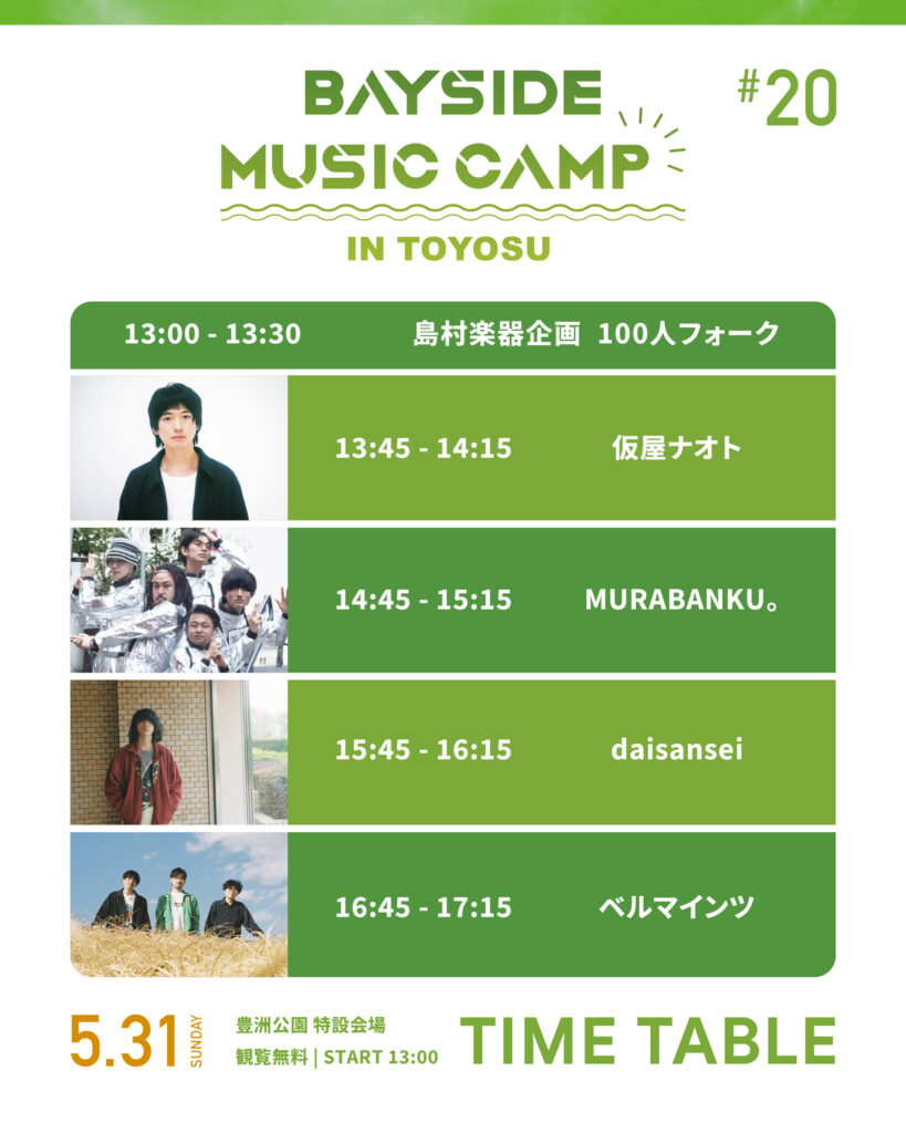 観覧無料の音楽イベント『BAYSIDE MUSIC CAMP #20』開催決定!